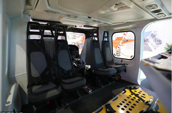 AW189是一款最新的高性能超中型雙發(fā)直升機,最大起飛重量8.6噸,配有兩臺帶有FADEC的GE CT7-2E1大功率渦軸發(fā)動機??团撟疃嗫纱畛?0人,滿載最大巡航速度287公里每小時,最大燃油量超過2噸,最大航程超1000公里。同時,AW189配置了玻璃化,集成式和開放式的航電系統(tǒng),極大地提高了態(tài)勢感知能力,有效地降低了飛行員工作量和優(yōu)化了執(zhí)行任務的效率。萊奧納多直升機公司相關人士透露,AW189滿足了最新的美國聯(lián)邦航空管理局和歐洲航空安全局29部最嚴苛的安全標準,同時具備全球最強的50分鐘主減速器干運轉(zhuǎn)能力,這充分保證了其完成搜救和海上石油作業(yè)的安全要求,是遠程、海上搜救的首選機型。圖中可見飛機內(nèi)部精美的內(nèi)飾。