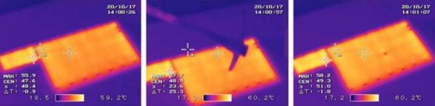 加熱層瞬時(shí)響應(yīng),均勻加熱,并且具有高破損的特性,即使加熱層出現(xiàn)幾個(gè)破損區(qū)域,整個(gè)系統(tǒng)不受影響,系統(tǒng)仍然可以繼續(xù)工作,另外也沒有“熱點(diǎn)”的趨勢(shì),消除安全隱患。