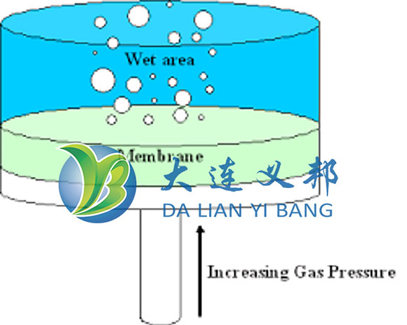 起泡點(diǎn)法測(cè)試原理:當(dāng)微孔濾膜和折疊濾芯用一定的溶液完全浸潤(rùn),然后通過(guò)氣源在一側(cè)加壓(實(shí)驗(yàn)儀器里面有進(jìn)氣控制系統(tǒng),可以穩(wěn)定壓力,調(diào)節(jié)進(jìn)氣),隨著壓力的增加,氣體從微孔濾膜的一側(cè)放出,表現(xiàn)為膜一側(cè)出現(xiàn)大小、數(shù)量不等的氣泡,通過(guò)儀器判斷出對(duì)應(yīng)的壓力,判斷依據(jù)就是泡點(diǎn)。