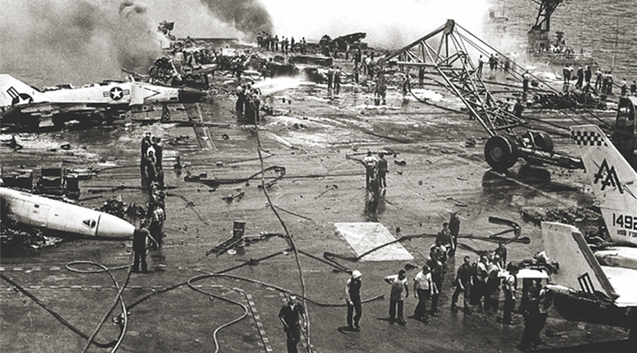 火災(zāi)一直是艦船的噩夢,不僅威脅到全體船員的安全,造成的連鎖反應(yīng)也是不可估量的。1951年-2008年美國航母發(fā)生火災(zāi)共計18次,最著名的是1967年福雷斯特號航空母艦的大火,其中有134名水手死亡,另有161人受傷。美國小鷹號航空1968年機庫外的儲藏室曾經(jīng)發(fā)生過火災(zāi),1969年美國企業(yè)號核動力航母、福萊斯特號發(fā)生火災(zāi),1994年核動力航母喬治華盛頓號同樣也應(yīng)為火災(zāi)引起了相當(dāng)嚴重的事故。2008年再次因火災(zāi)損失高達7000萬美元等。