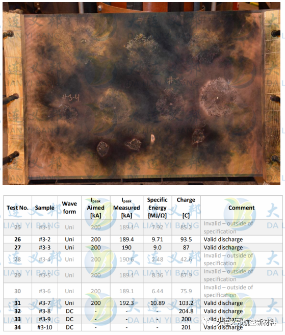 測試結(jié)果:經(jīng)過3次長波和短波的沖擊后測試板表面金屬網(wǎng)損壞下面復(fù)合材料部分無損壞,經(jīng)過長波和短波沖擊后金屬網(wǎng)傳導(dǎo)區(qū)無斷裂/熔斷。