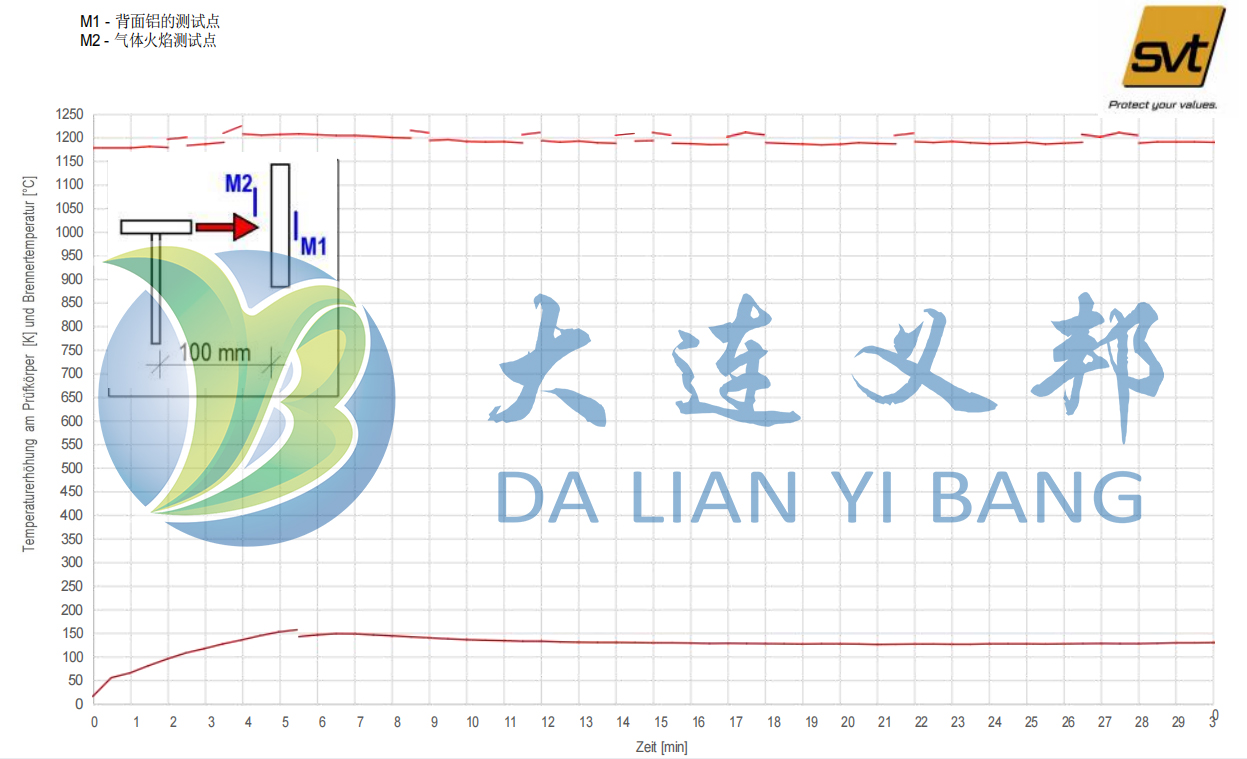 M1 – 測(cè)試試樣背板溫度,M2 –氣體火焰溫度