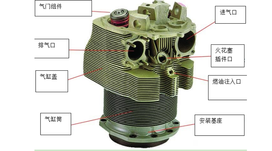發(fā)動(dòng)機(jī)中產(chǎn)生動(dòng)力的部分稱為氣缸。每個(gè)氣缸是由氣缸蓋和氣缸筒兩大部分組成的總成。在組裝時(shí),氣缸蓋通過(guò)加熱膨脹,然后擰緊在已冷卻的氣缸筒上。當(dāng)頭部冷卻和收縮并且槍管升溫和膨脹時(shí),就會(huì)形成氣密接頭。大多數(shù)使用的氣缸都是以這種方式構(gòu)造的,使用鋁合金氣缸蓋和鋼制氣缸筒。