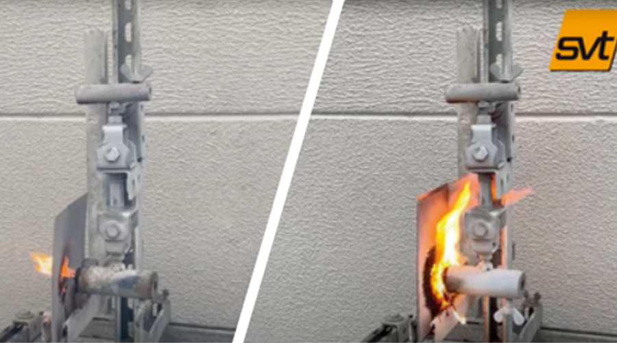大連義邦引入SVT輕薄型膨脹防火涂料,是一種特制的防火涂層,涂敷于動(dòng)力電池包的內(nèi)壁或殼體上,用于電池包內(nèi)部以及外部的火燒保護(hù),當(dāng)暴露在1200?C 的明火條件下,瞬間膨脹超過自身厚度25倍以上,僅使用1毫米厚并且是1層的SVT涂層,即可將面板未暴露面(背面)的溫度保持并穩(wěn)定在150 ?C以內(nèi),并且滿足國(guó)內(nèi)行業(yè)需求滿足30分鐘的防火要求。并且,火燒后產(chǎn)生的膨脹層依然保持高絕緣性能。