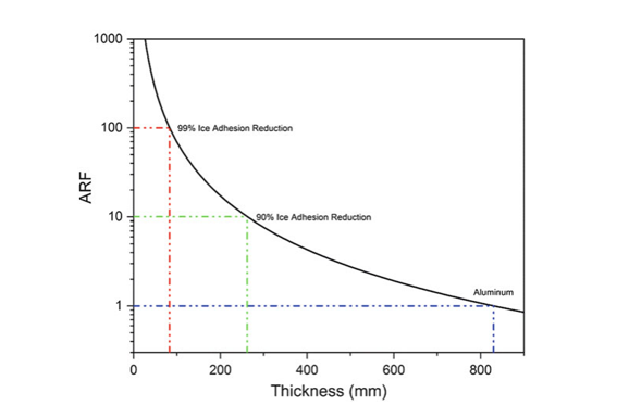 ARF越高,冰自行脫落效果越好,當(dāng)ARF達(dá)到100,冰的附著力降低了99%