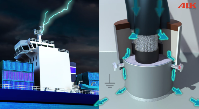 屏蔽是防止和減小雷電電磁脈沖輻射對(duì)敏感電子設(shè)備危害的最有效方法之一。由于雷電的電廠和磁場(chǎng)均較高,要求屏蔽材料既具有良好的電屏蔽,又具有良好的磁場(chǎng)屏蔽效果。通常,采用導(dǎo)磁率較高的鋼結(jié)構(gòu)船體能提供較好的磁屏蔽效果。艦船系統(tǒng)屏蔽的關(guān)鍵在于艙室孔隙、比如電纜貫穿處、通風(fēng)孔、觀察窗等,普通的貫穿封堵裝置不能提供足夠的屏蔽效能,對(duì)關(guān)鍵的電子設(shè)備必須采用特殊的材料和工藝,對(duì)屏蔽體的所有縫隙進(jìn)行良好的焊接、壓接或彈性接觸,并對(duì)屏蔽體的貫穿導(dǎo)體在入口處進(jìn)行良好的電連續(xù)性處理,都是提高艦船系統(tǒng)屏蔽效能的有效方法 。