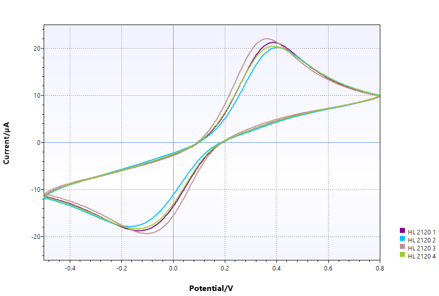 在最近的測試中,使用Haydale導(dǎo)電油墨在PET材料上按標(biāo)準(zhǔn)生物傳感器90-40目@45°進(jìn)行打印,結(jié)果顯示了四個傳感器的優(yōu)異性能。這些傳感器不僅響應(yīng)時間快、信號穩(wěn)定,而且重復(fù)性好,完全滿足了動態(tài)血糖監(jiān)測的嚴(yán)格要求。油墨的流動性和干燥特性在打印過程中表現(xiàn)出色,保證了生產(chǎn)過程的高效性和試紙的一致性,這對于動態(tài)血糖監(jiān)測系統(tǒng)的性能和可靠性至關(guān)重要。