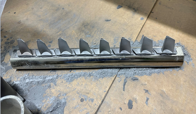 將葉片部件放在工裝夾具中后,填補部件與夾具之間的縫隙,以防止涂層蒸汽滲透到葉片根部區(qū)域,尤其葉根榫齒部位,適用于大的工裝夾具。